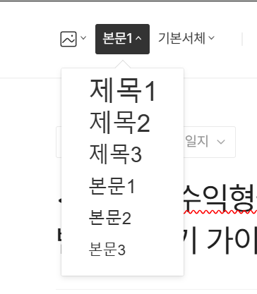 이 형식요건에 맞추어 본문의 글자크기를 한다면 제목1 아래는 본문1 제목2 아래는 본문2를 하는 것이 맞겠으나 그렇게 하니까 본문 글자 크기가 너무 작아져서 저는 모든 본문에 본문1을 적용하였습니다.